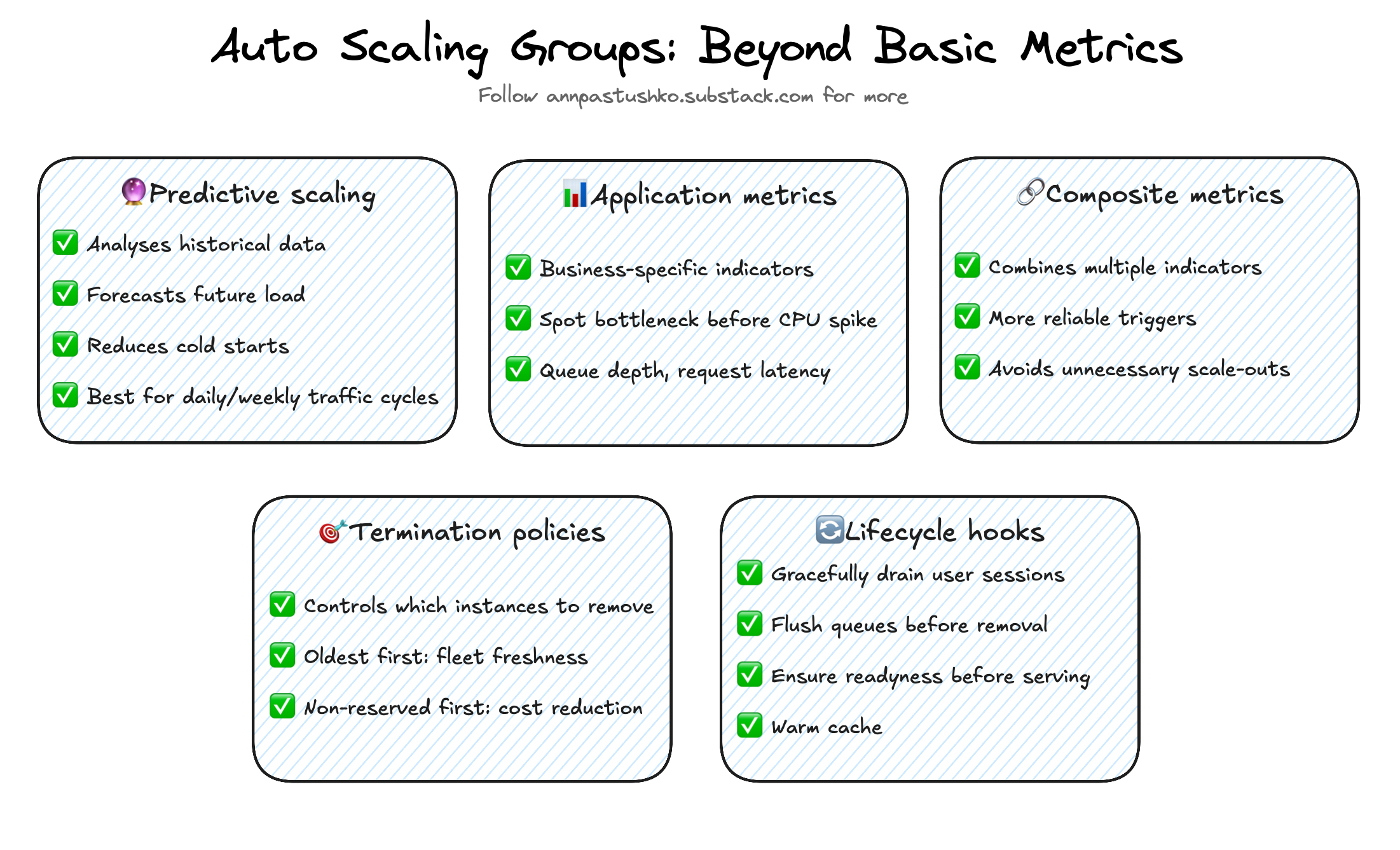 This works well for workloads with daily or weekly traffic cycles — such as e-commerce traffic peaking at specific hours, or reporting systems that see load at the start of each business day. It’s less effective for completely unpredictable traffic, but when patterns exist, predictive scaling can reduce cold starts and latency significantly.